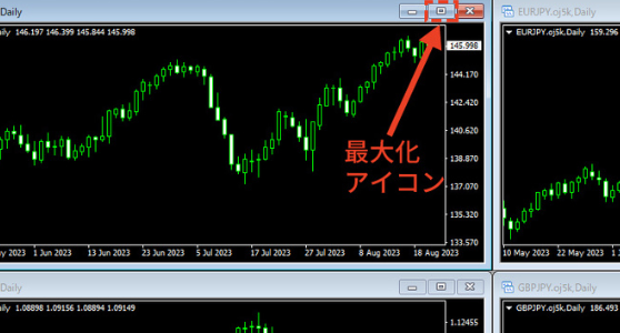 【MT5】チャート画面上の簡単操作、ショートカットキーでチャート画面の最大化、縮小を行うツール!もう、小さな拡大化ボタンや縮小ボタンの操作は不要!