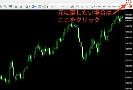チャート画面のサイズ変更変更に右上の拡大化ボタンや縮小ボタンを押していませんか?