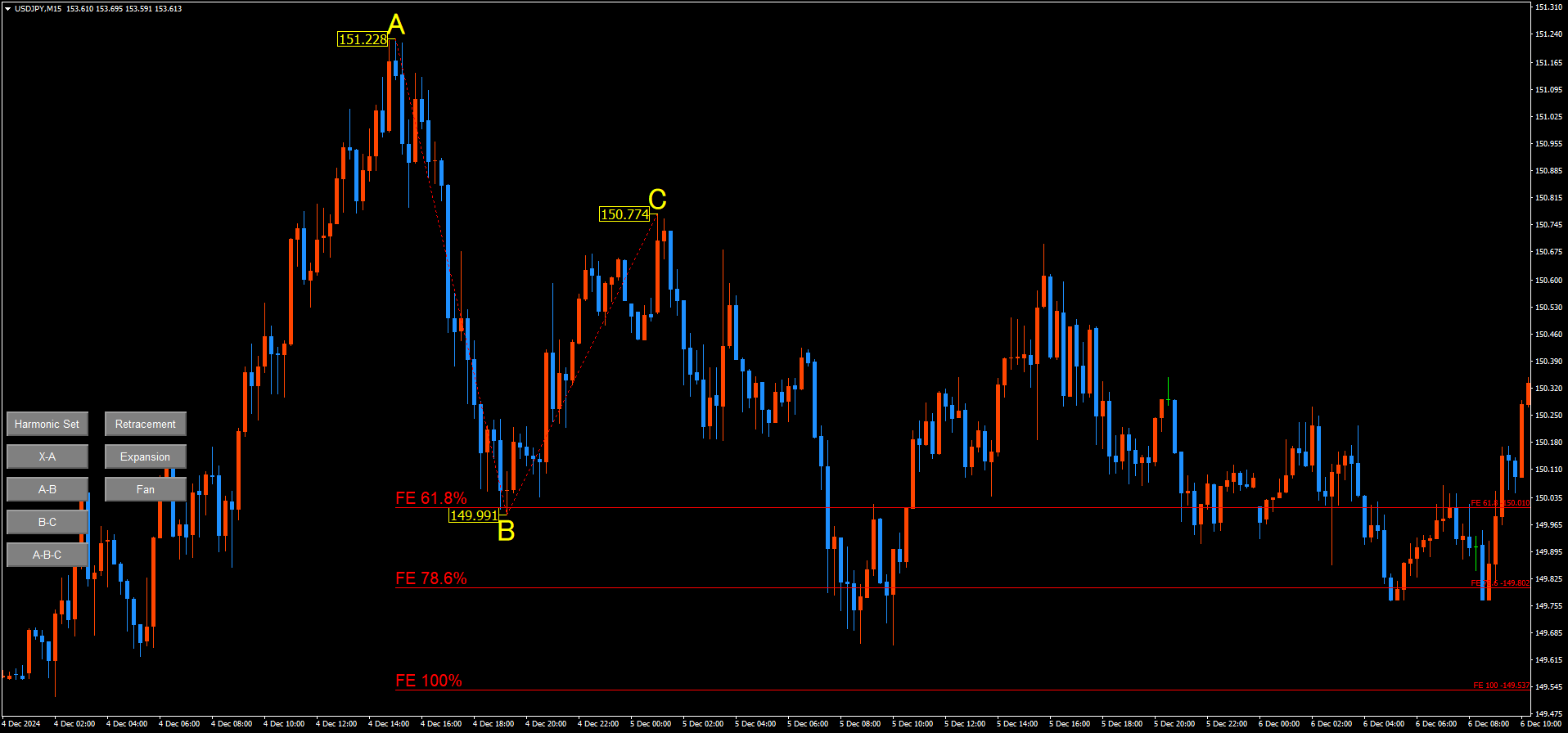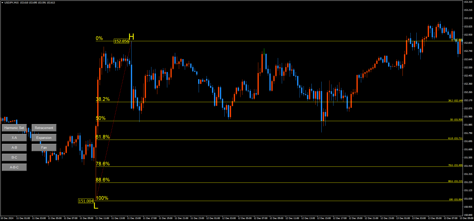 - XAリトレースメント、ABリトレースメント、BCエクステンション、ABCエキスパンションを引き、表示させたり非表示にできます。