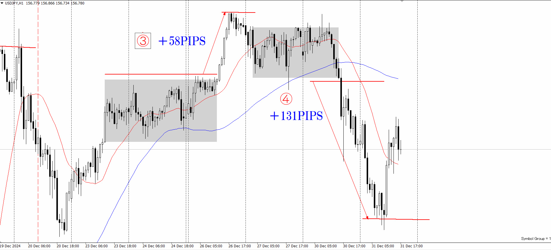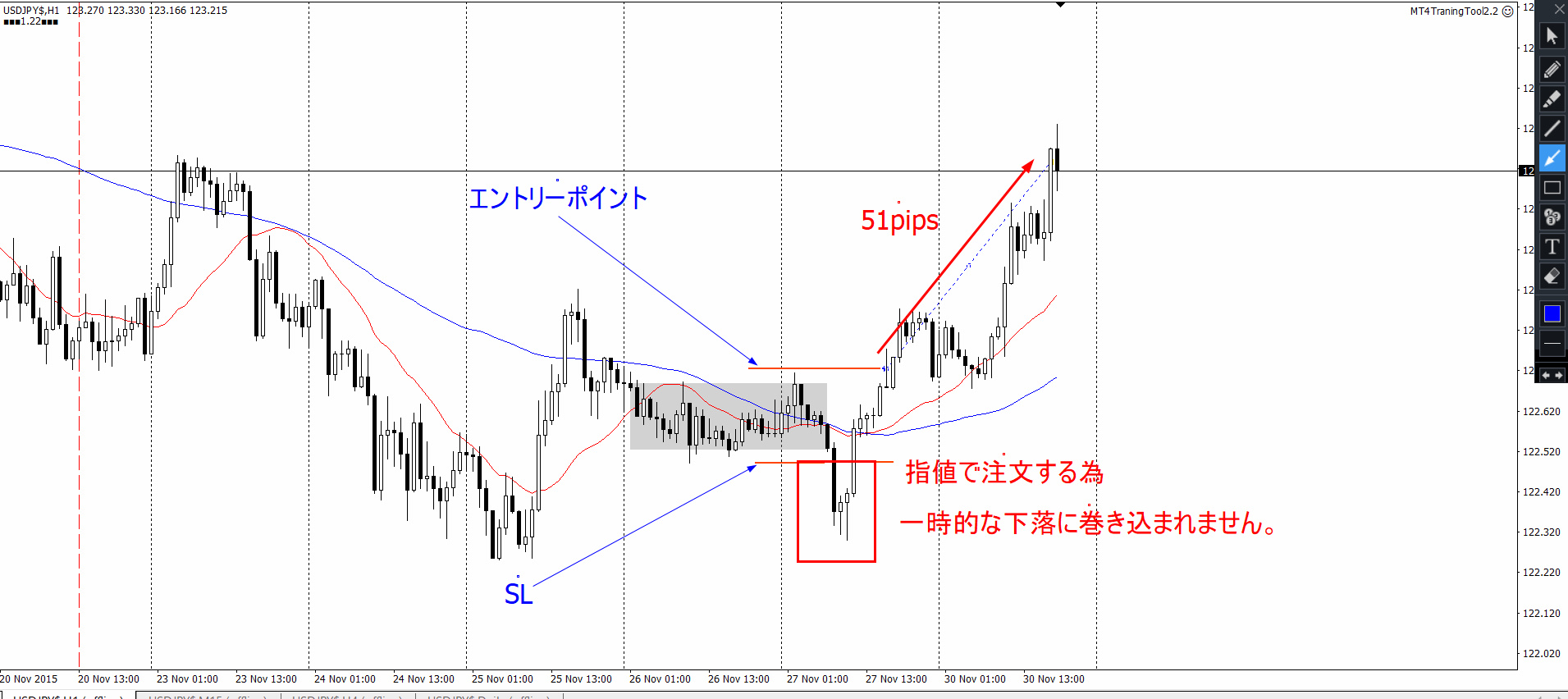 ⑦移動平均線と水平線を使ったトレード手法が好きだ。