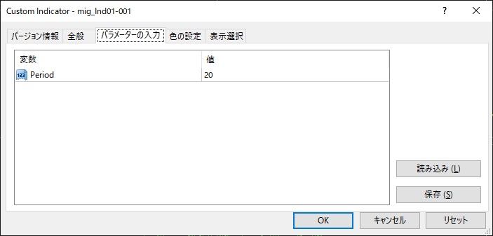 それではこのインジケーターが何をしているのかについて解説します。本インジケーターにはパラメータ(Period)があります。こちらは10以上を設定することで稼働するようにしています。