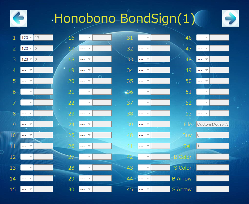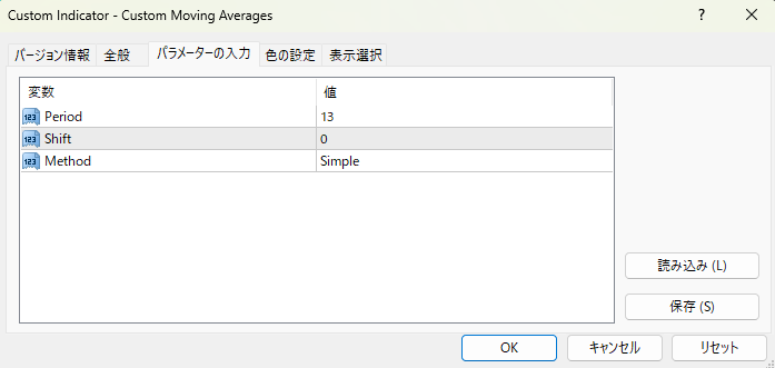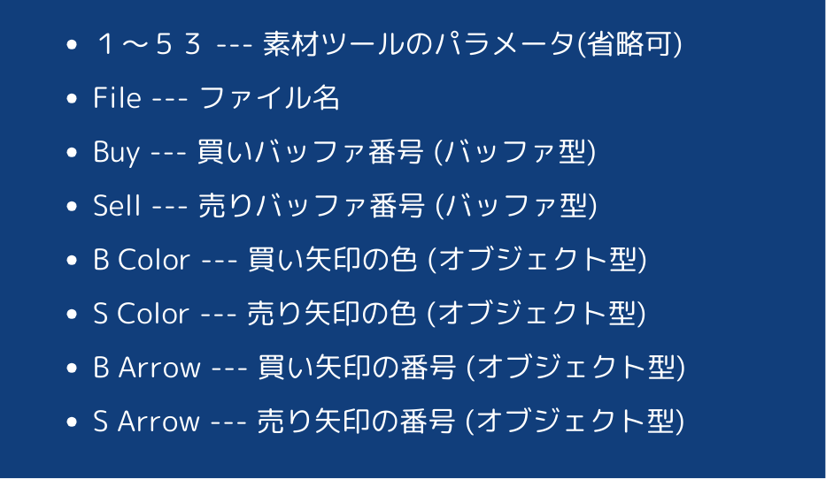 1~53までの番号の中には、利用するインジケータのパラメータを設定します(省略可)。