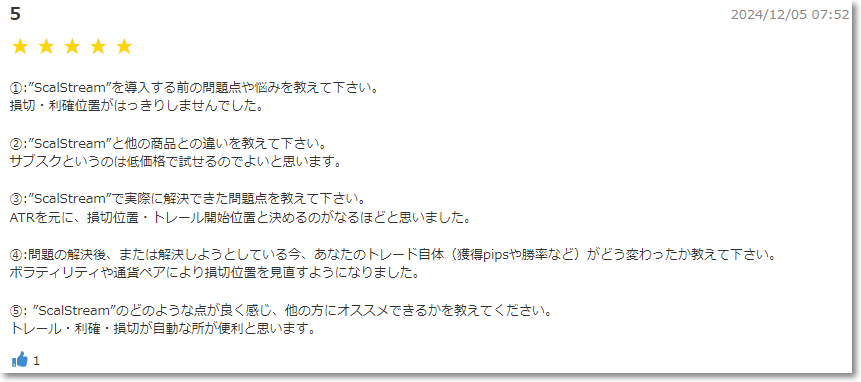 ⑤: ”ScalStream”のどのような点が良く感じ、他の方にオススメできるかを教えてください。