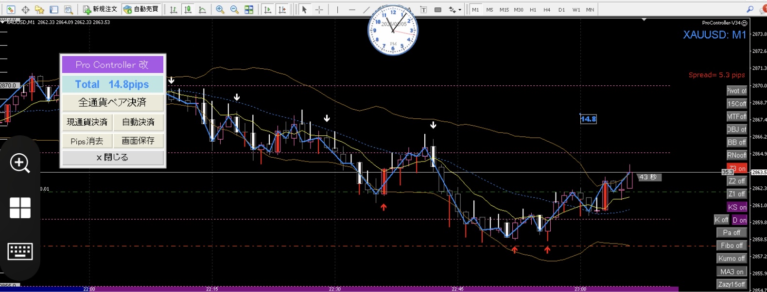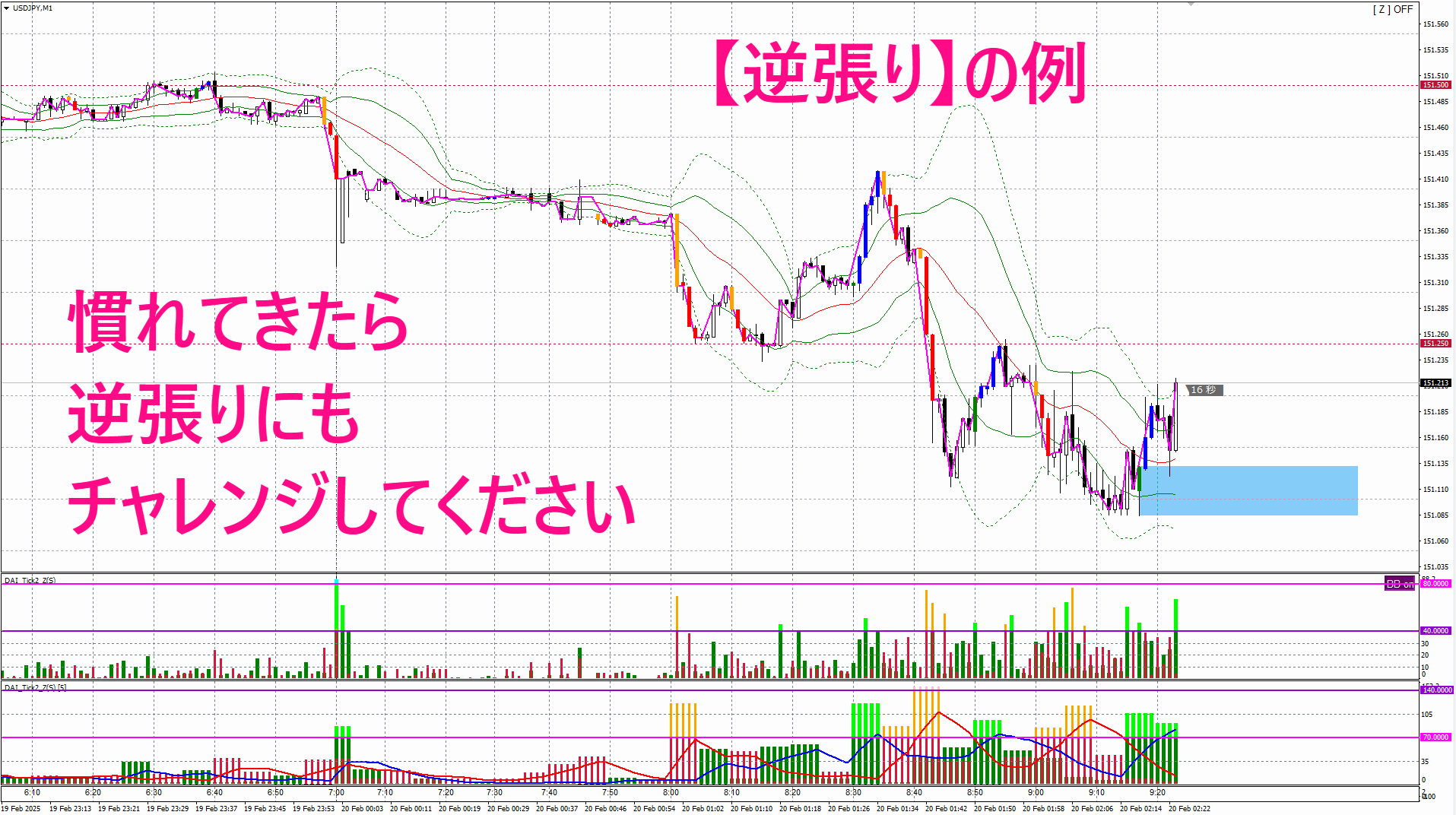 インジは必須ではありませんので、慣れるといらなくなると思います。キリ番やボリンジャーバンドはあると便利ですが、私のオリジナルインジはなくてもできるくらい上手になってほしいです。ただ逆張りのときにサブウインドウのMAのクロスを目安にするなど私よりもインジをうまく使いこなしている方もいらっしゃいますので感心するばかりです。できる限りサポートはしていきますので安心してください。