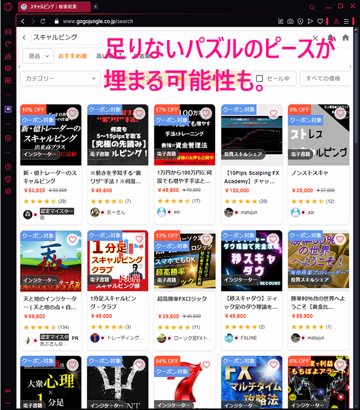 Q.安くなりませんか? A.なりません。申し訳ありません。魂をけずって作っています。大人の事情で安くすることはできないので、購入できない場合はあきらめるしかないと思います。またトレードは精神状態に左右されやすいです。余剰資金ではなく余裕のない状態で行うとやってはいけない行動をしがちです。不必要に損失を拡大させることのないよう十分気をつけてください。