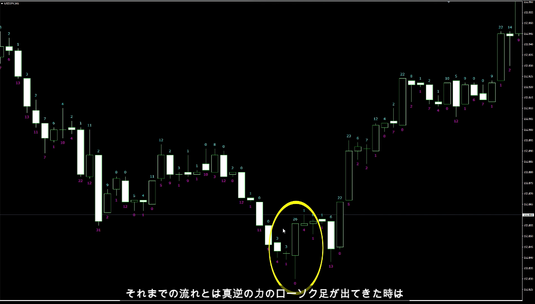・無料インジはUSDJPYのみで動作します。  教材「キャンドルパワー」の有料版はすべての通貨ペアで動作します。