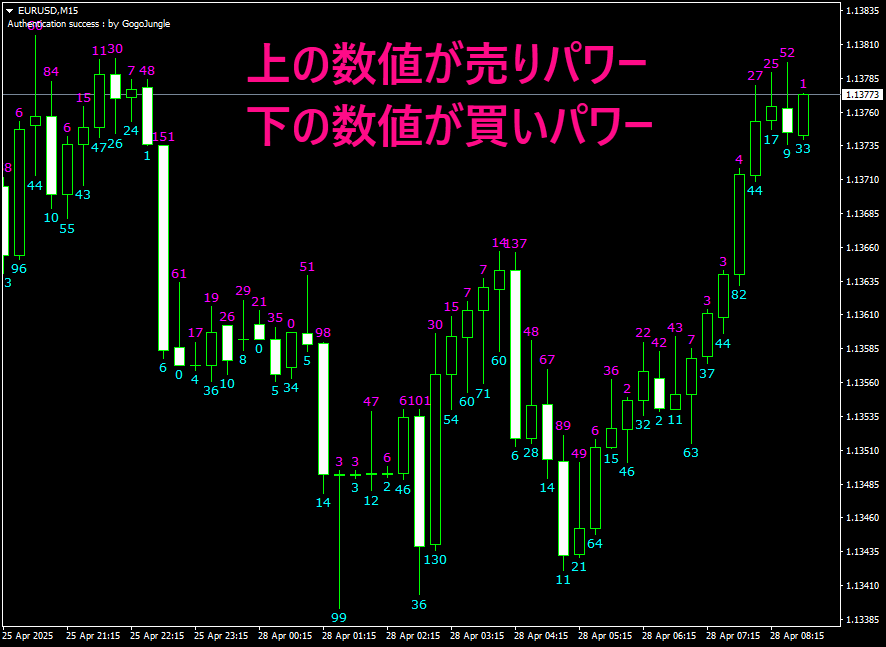 買いパワー、売りパワーを数字で表します。 主に検証で使用します。トレードで活用していただいても構いません。