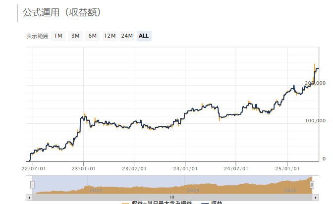 ドル円で長期のバックテストを行った結果を示しています。(頻度はデフォルト値を使用)
