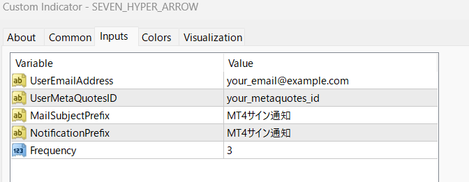 まず、通知を受け取るメールアドレス、MT4のIDを入れてください。(どちらか一方でも可)