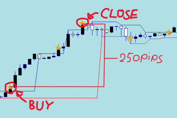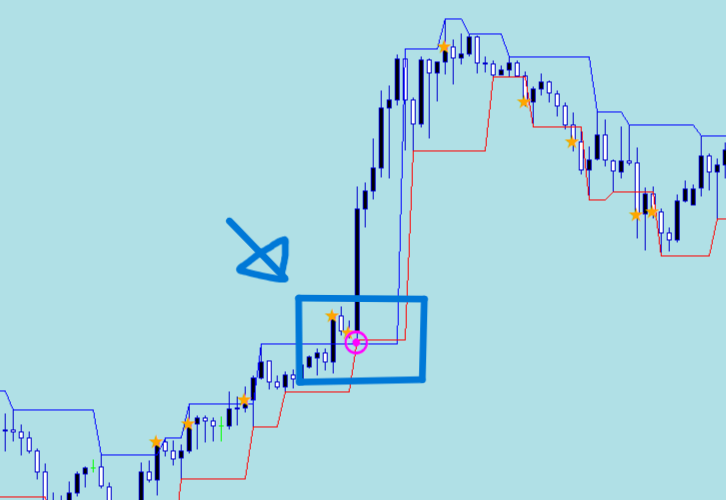 ① 順張り:サインが出た後、次の足も陽線で買エントリー