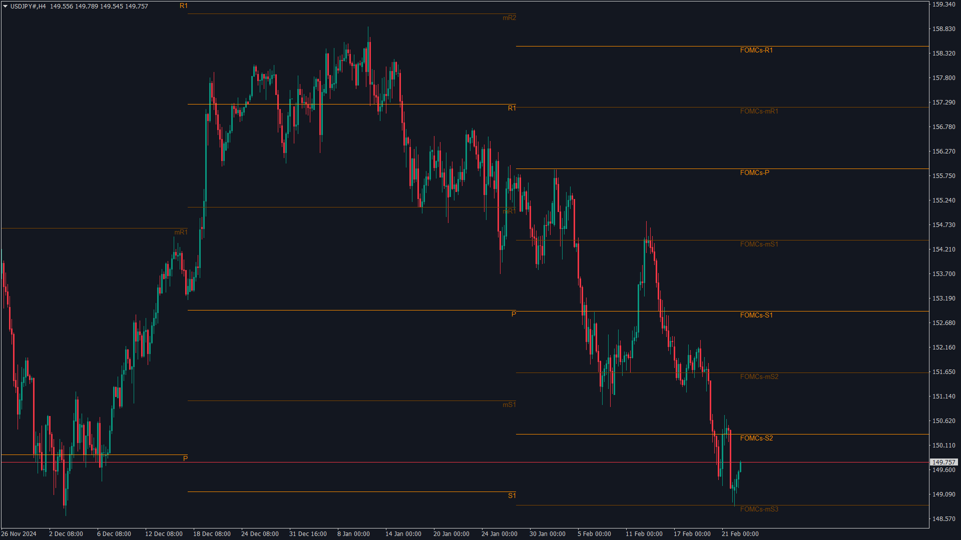 USDJPY 4時間足 FOMC足 5 2025.2.24