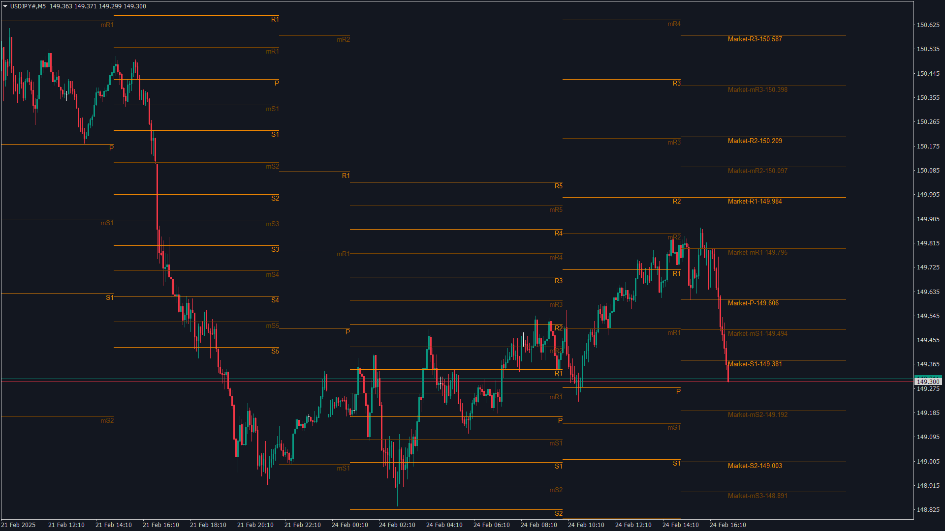 USDJPY 5分足 マーケット足 5 2025.2.24