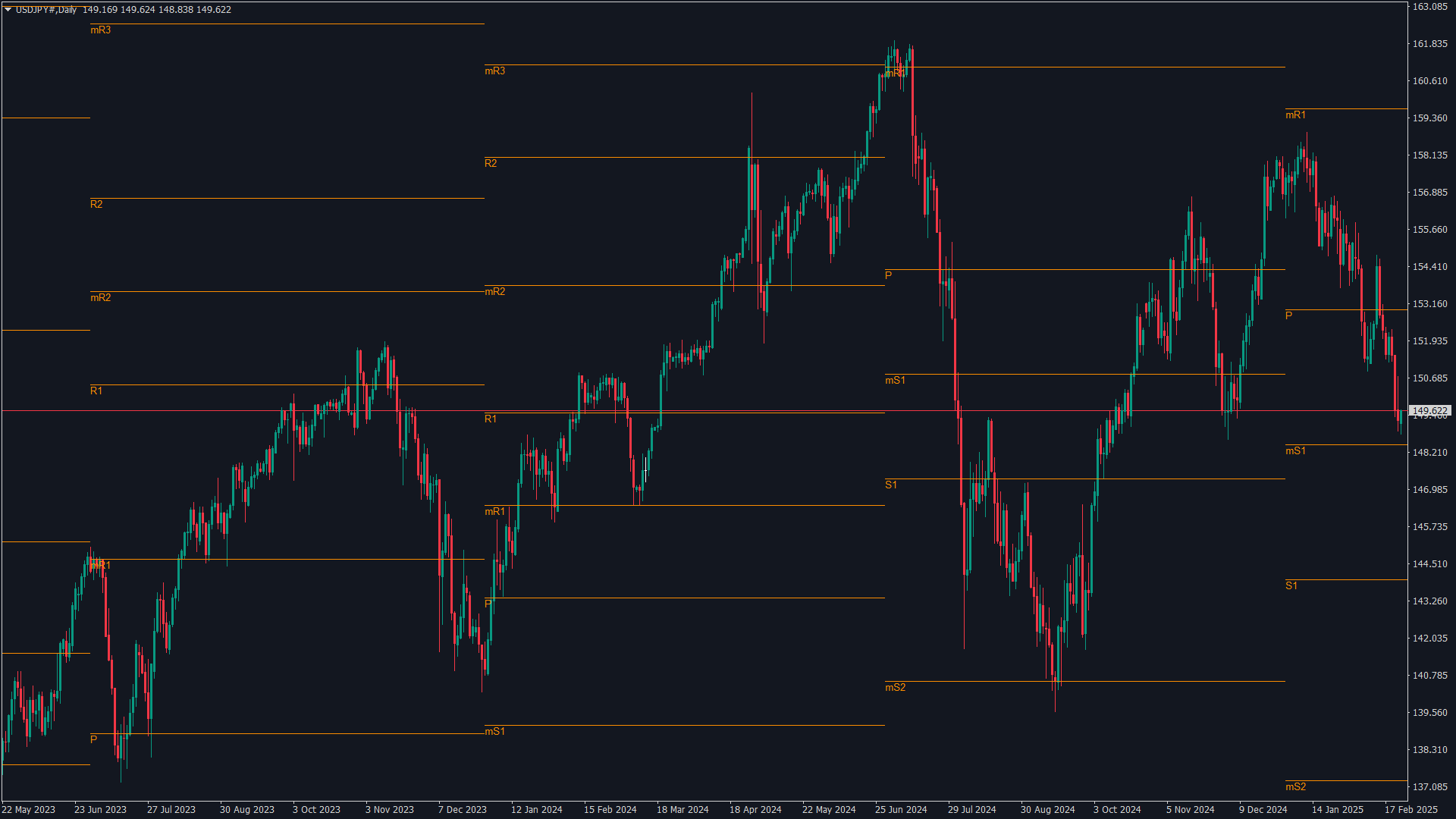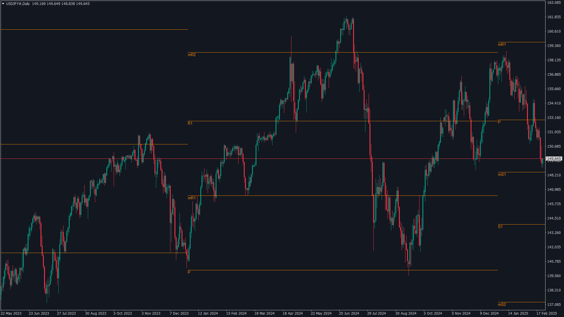USDJPY 5分 1日~10年 5 2025.2.24
