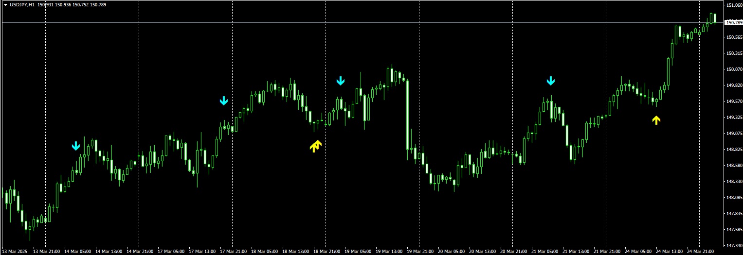 - 水色矢印: 売りシグナル