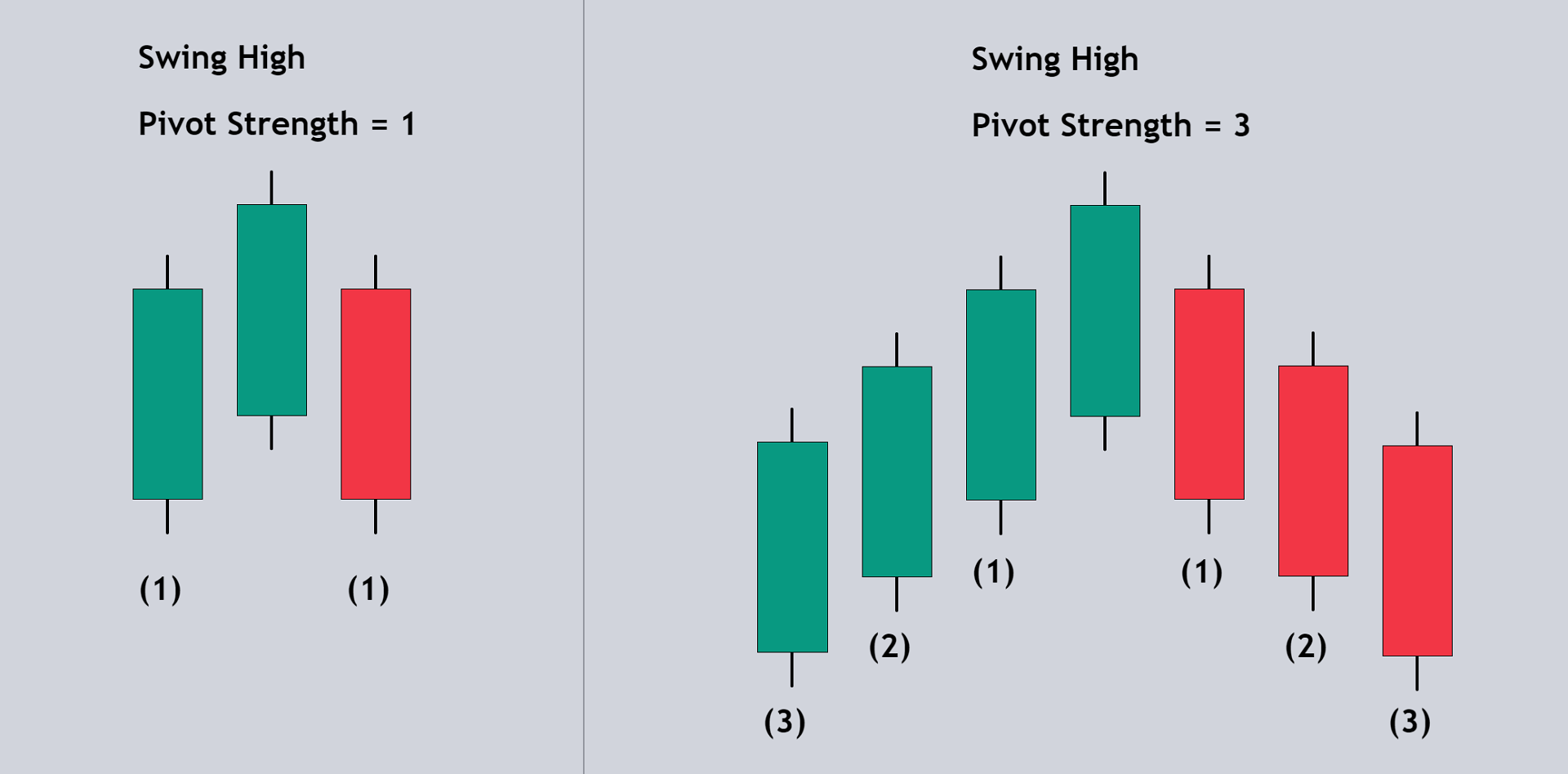 それでも、私たちのスイングピボットの重要性は、入力ピボット強度パラメータによって支配されており、これはこれらのピボットの左側と右側にある多くのバーと比較する必要があります。これはオプションのパラメータであり、従来はデフォルトで1に設定されています。