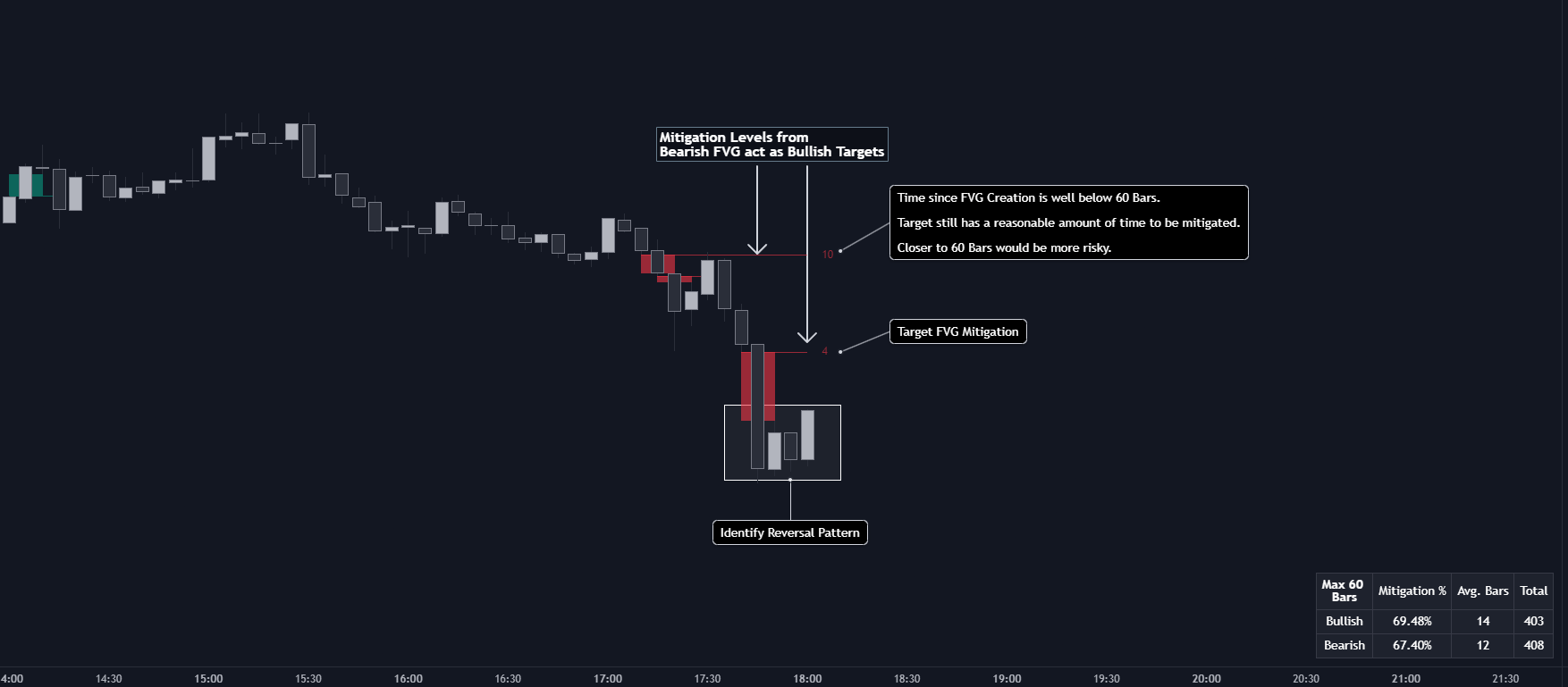 これを考慮に入れると、ブレイクアウェイFVGを特定した後、ギャップを再バランスするための反転を論理的に探すことができます。