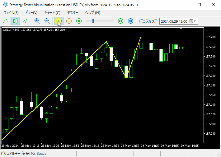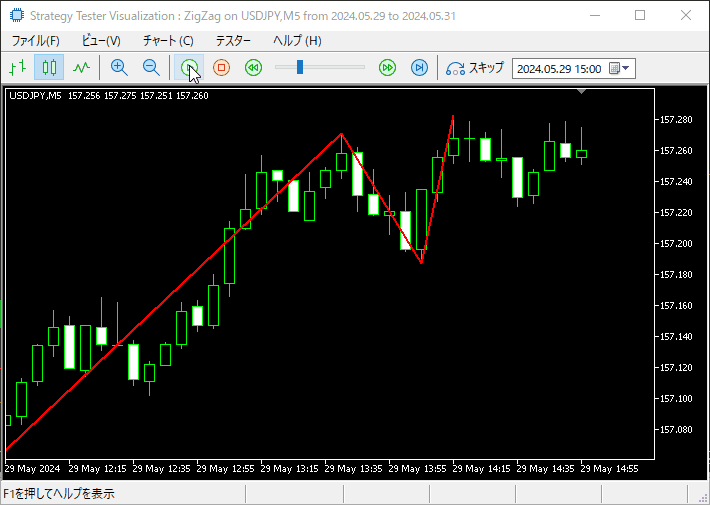 - データ品質に起因する描画への影響について:上位足のジグザグを下位足に表示する際、その時刻に対応する下位足のローソク足が欠損していると、頂点が時間的に最も近いローソク足に描画されますので、ZigZagの形状が歪むことがあります。