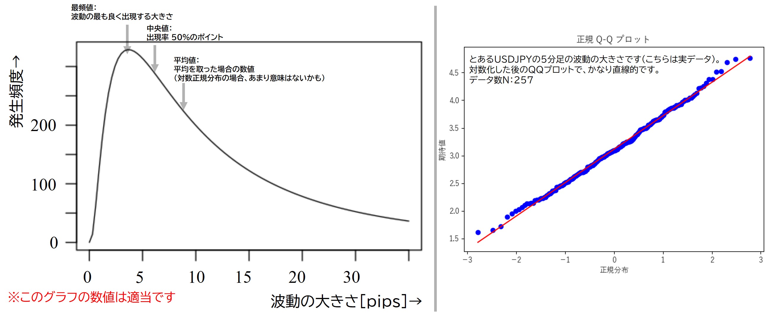 ①1Mなどの時間軸にて、チャートの描画範囲外(左端の外側からラインが伸びてしまう現象を修正しました。 ②波形解析用の出力ファイルの波形の大きさが対数空間になっていたので、通常の「pips」単位に変更しました。また、隣列の波形形成の所要時間を「分」単位に変更しました。なお、波形形成の所要時間は、ローソク足本数から計算しておりますので、休憩時間を挟む銘柄(HK50等)では、誤差が大きくなります。 ③波形解析にTsdを加えました。これは、波形形成の所要時間の目安です(波動の形成時間も対数正規分布と仮定、その1シグマ)。 いずれも、参考値としてご利用ください。