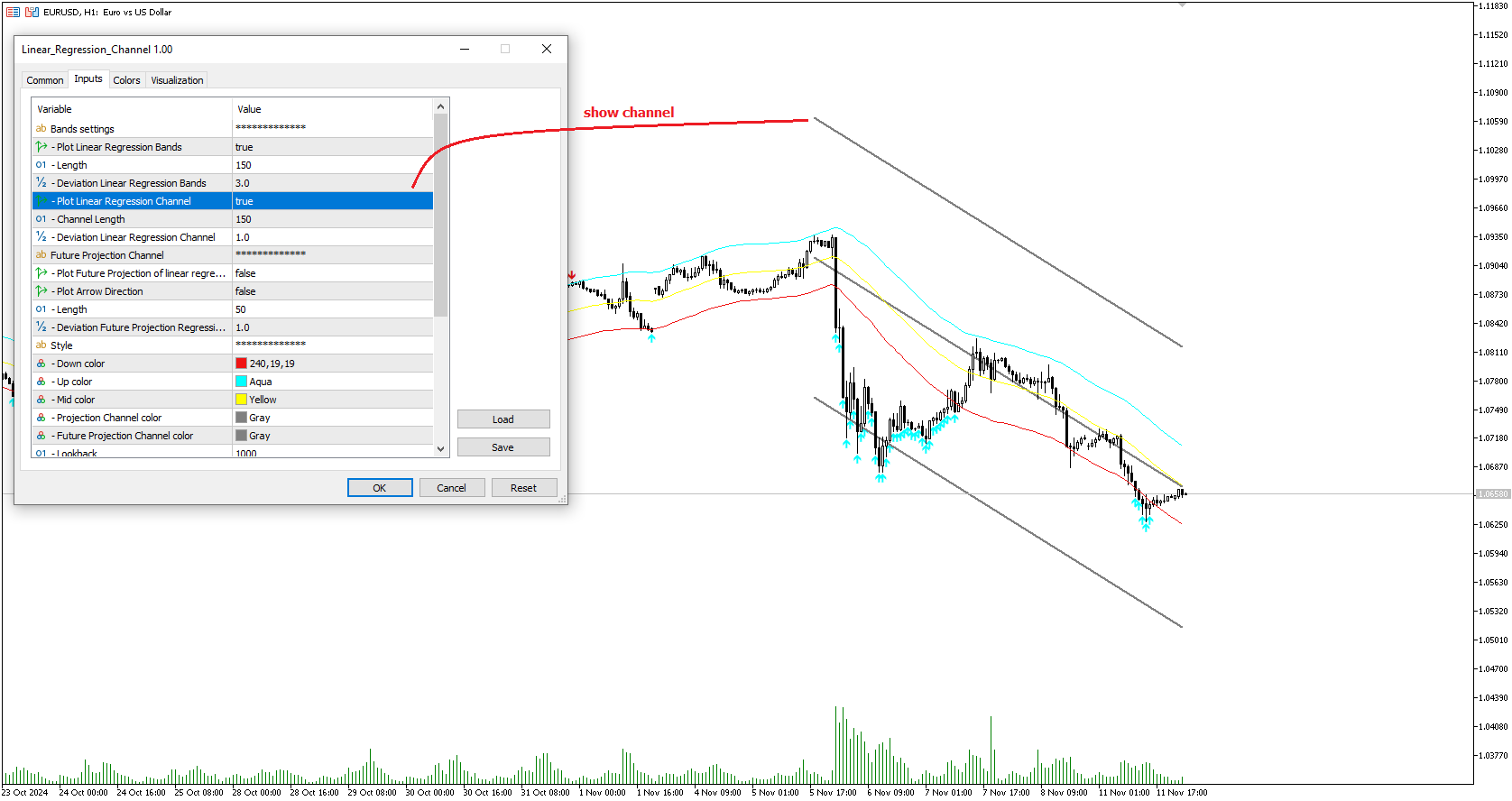 - 説明: 線形回帰を使用してチャネルをプロットし、主要なトレンドを視覚化します。