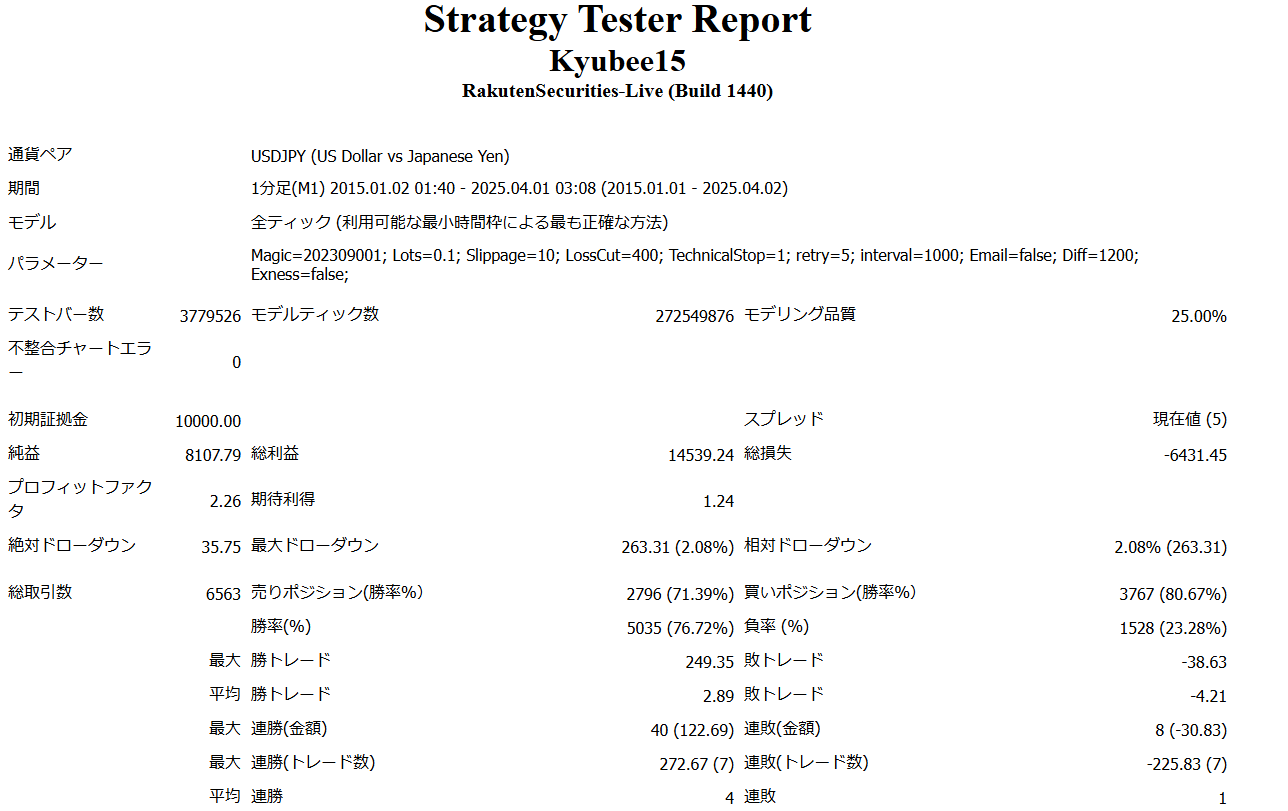 上記、九兵衛のバックテストの結果は下記の通りです。