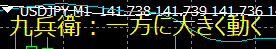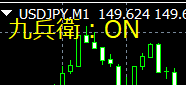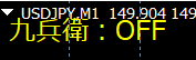 インジケーターを利用する際は九兵衛インジケーターが稼働しているかどうかは左上に下記の通り表記されるのですぐにわかるようになっています。