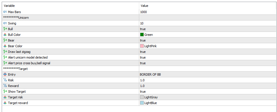 • 弱気:弱気のユニコーンパターンを有効/無効にします