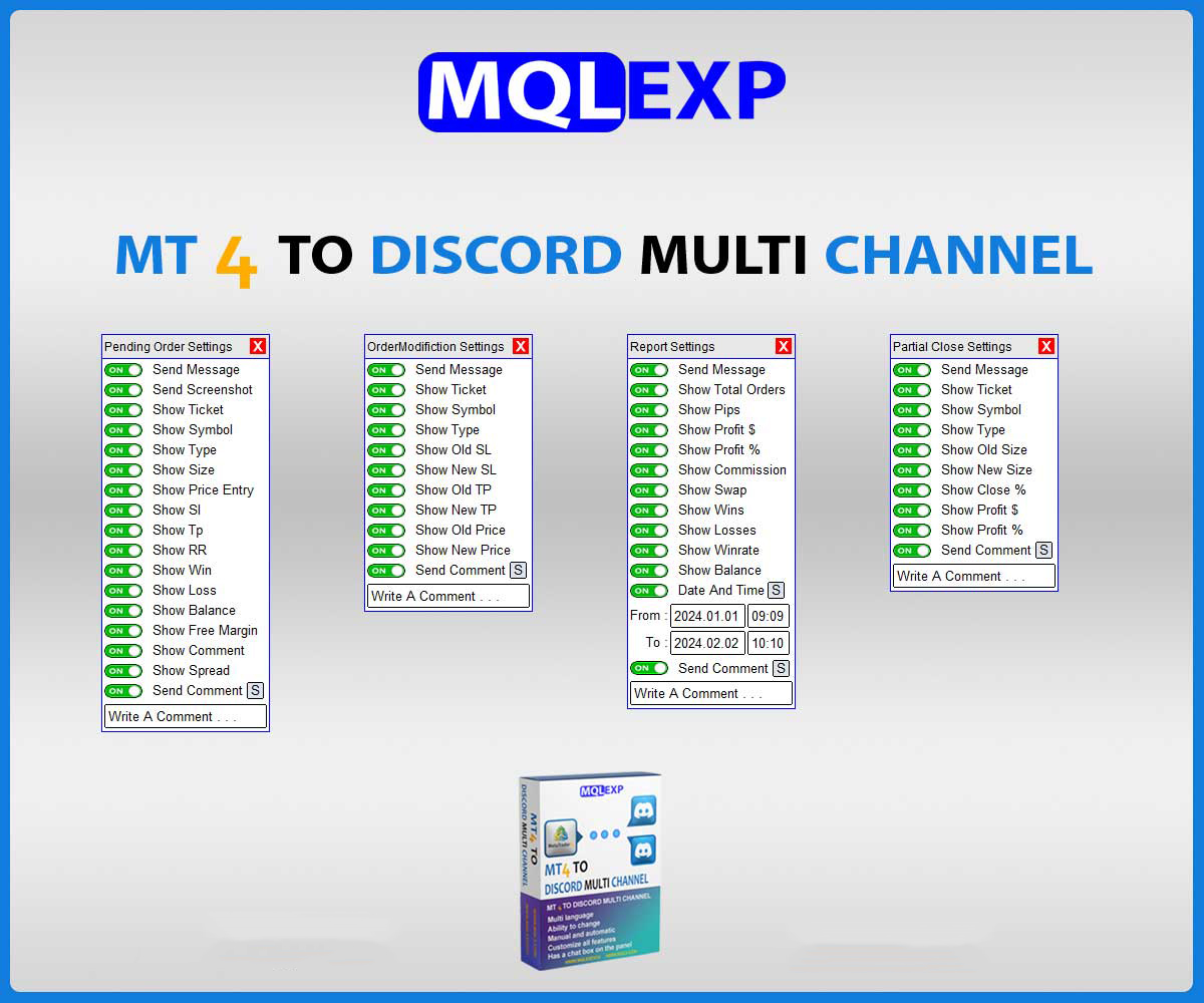 MT4からDiscordマルチチャンネルへのツールは、使いやすくカスタマイズ可能です。この製品は、調整可能なシグナルを2つの方法で送信できる魅力的なグラフィカルインターフェースで提供されています。