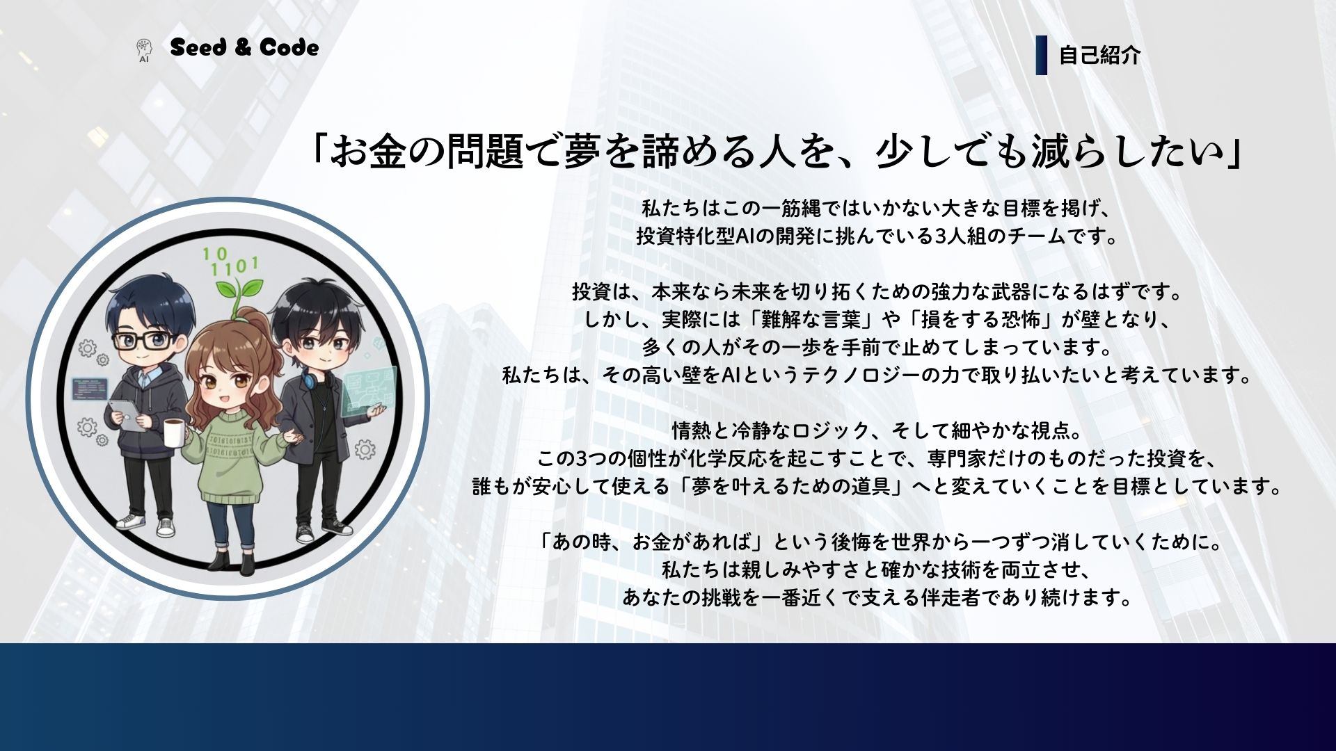 トレードで資産を形成する解決策の一つとして支えとなるシステム」を開発するためです。