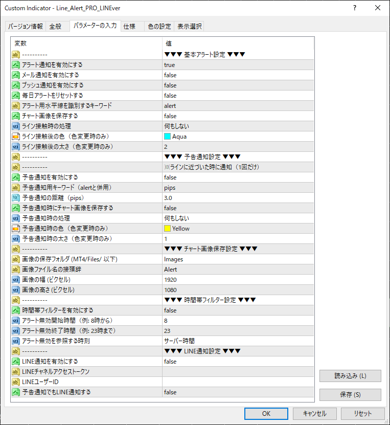 MT4用インジケーター本体ファイル:LINE対応版(.ex4形式)