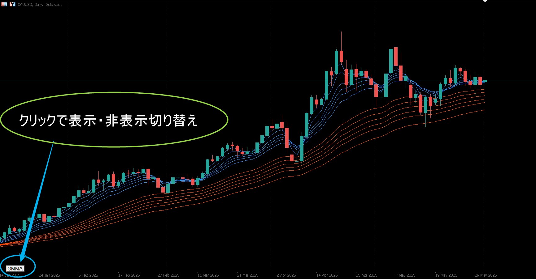 MT5用 GMMA ON/OFF ボタンクリックで表示・非表示切り替え