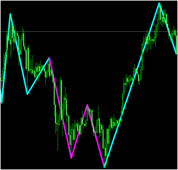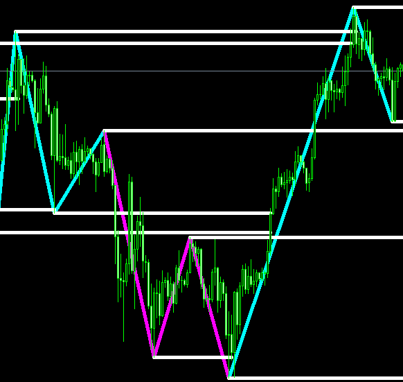 MT5標準のZigZagをベースにZ、igZagの太さを変えて、短期・中期・長期の3つの時間足で同時に表示可能。