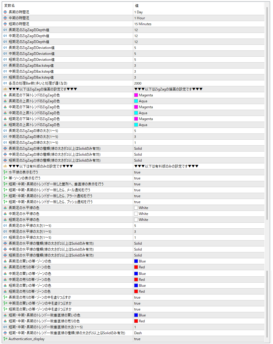 - 3つの時間足(短期・中期・長期)に対応したZigZag描画
