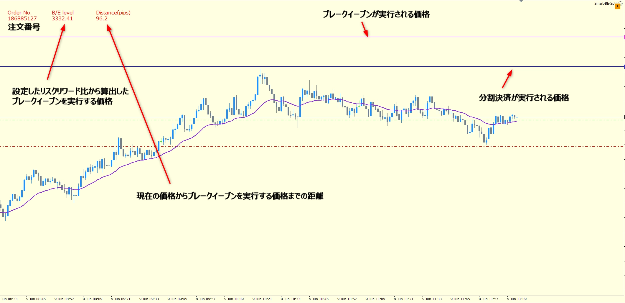 スマートマネー系トレーダーがよく実践する、「+2〜3 RRでの分割決済+ブレークイーブン」という決済方法にも使えます。