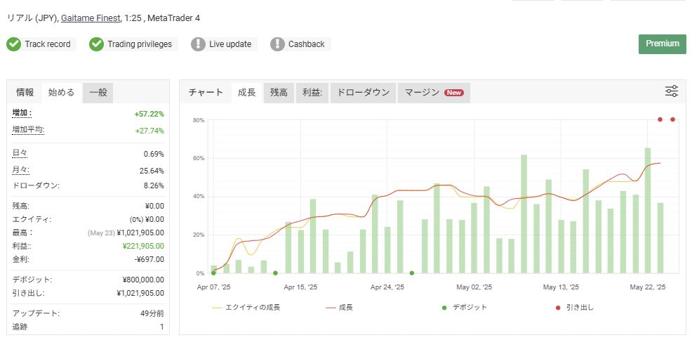 ここまで明示したエントリーサインが提供できる理由は、私自身が本ロジックを自動化して運用してきた実績があるからです。