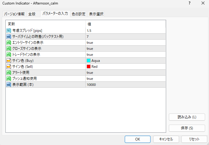 本インジケータは時差を自動取得します。バックテスト時は手動調整をお願いします。