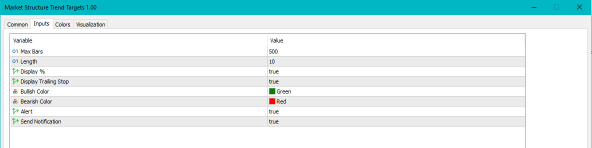 - 長さ:トレンドブレイクアウトのためにピボットの高値と安値を特定するために使用されるバーの数を定義します。
