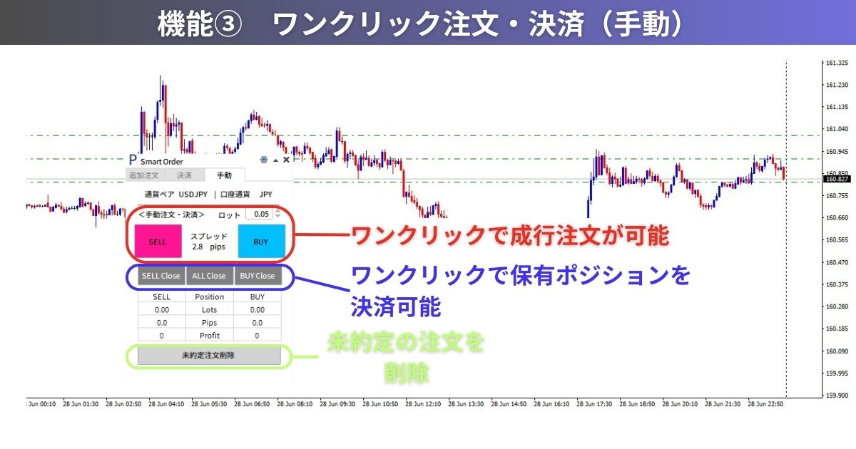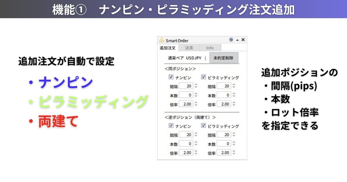 半裁量EA「Smart Order」(以後、本ツールと呼ぶ)に搭載されている機能は以下の通りです。
