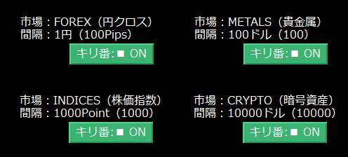 従来のように「Pips固定式」でキリ番間隔を設定する必要はなく、銘柄に応じて違う間隔・特徴を自動判定し
