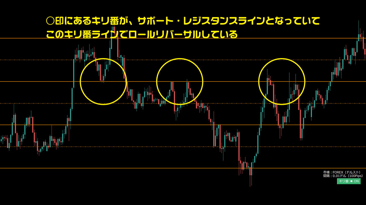 ★キリ番でロールリバーサル(支持→抵抗/抵抗→支持)が起きる