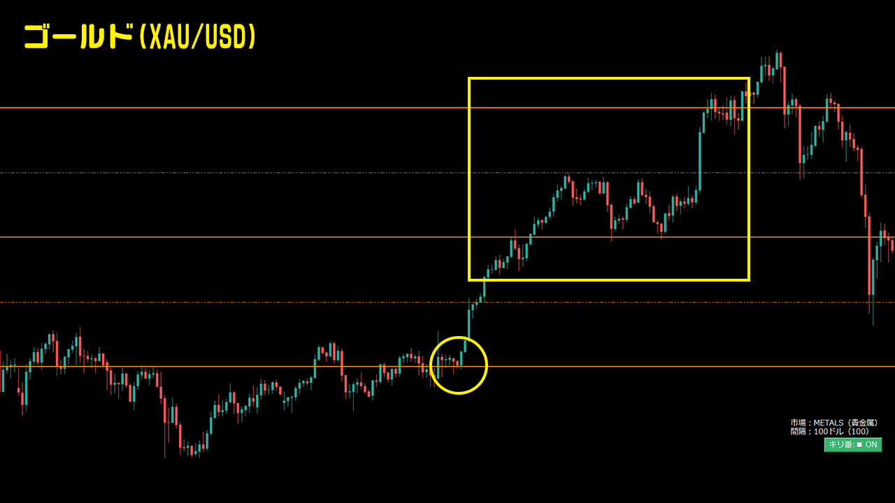 ◆ ゴールド:急騰・急落前のキリ番タッチ