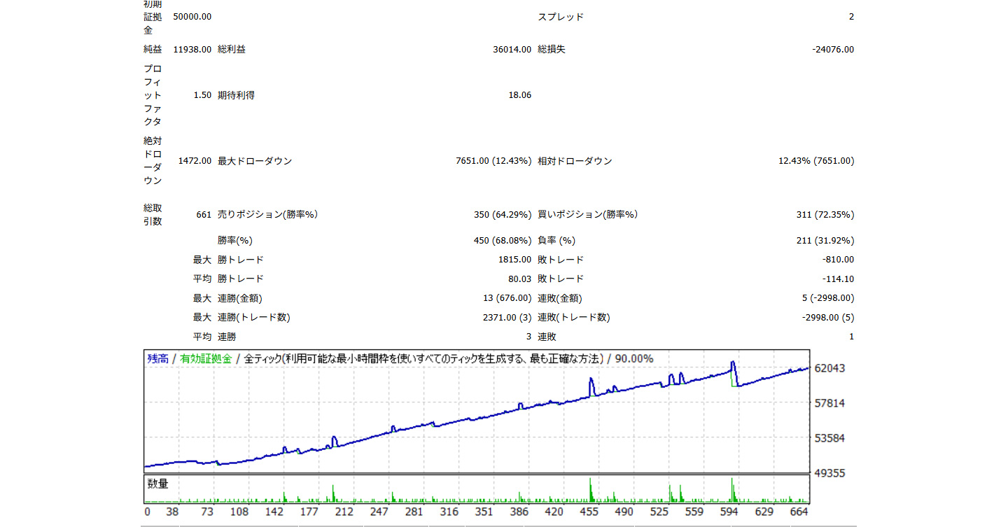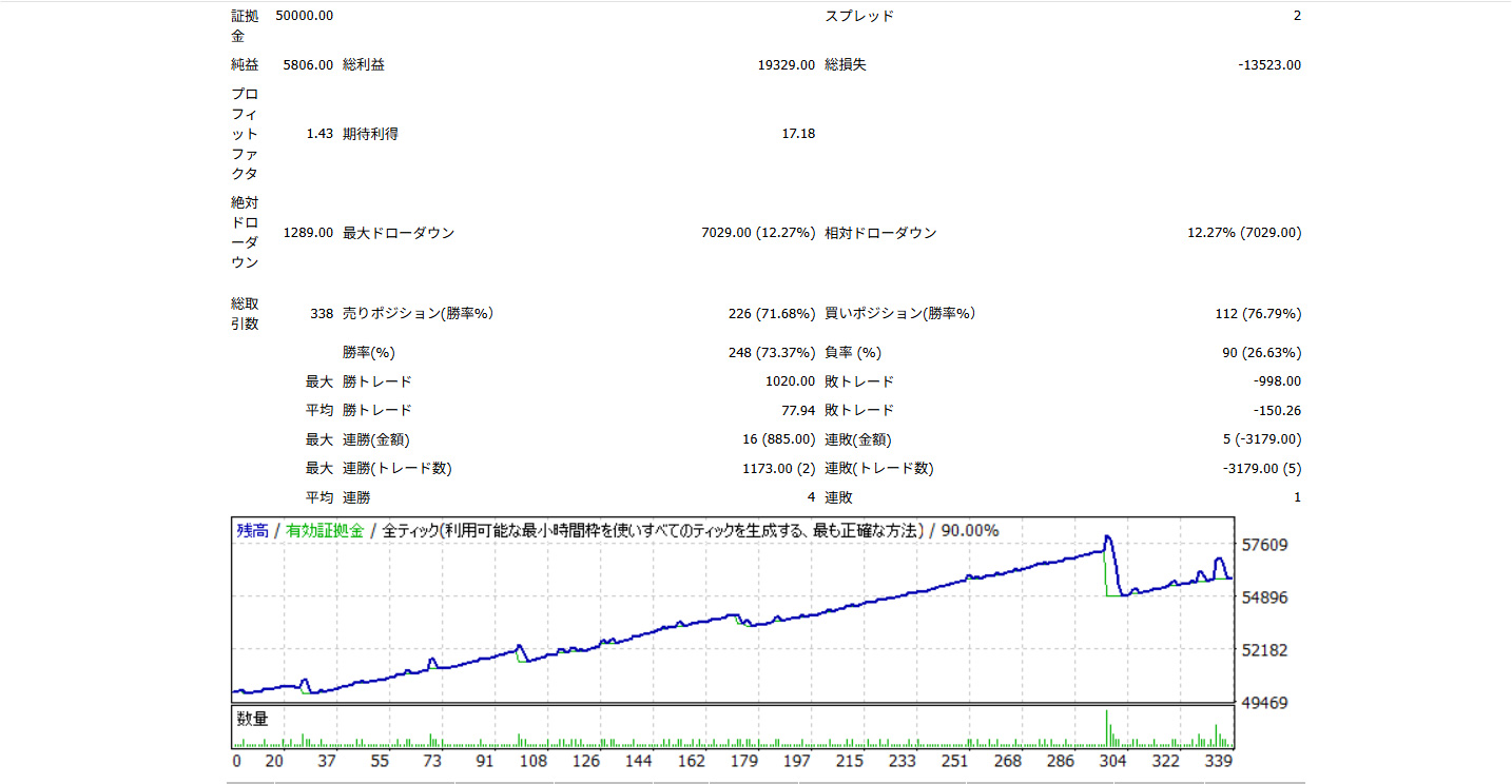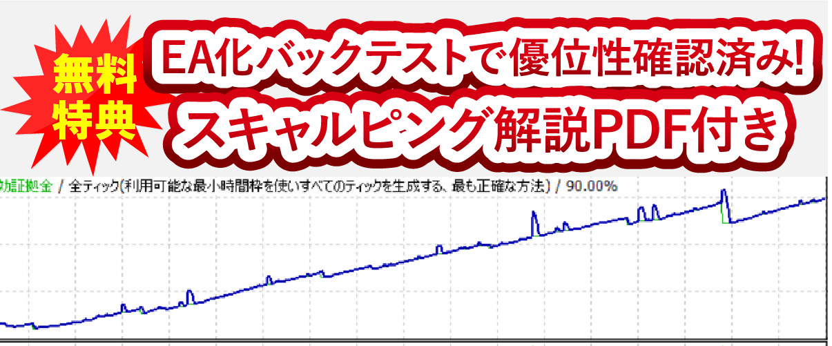 さらに、特典PDFで解説しているスキャルピング手法をEA(自動売買プログラム)化し、客観的なデータを検証するためにバックテストを行いました。