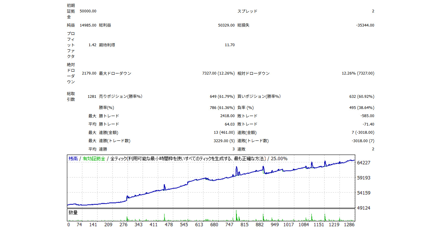もちろん、バックテストは過去のデータに基づくものであり、未来の利益を保証するものではありません。