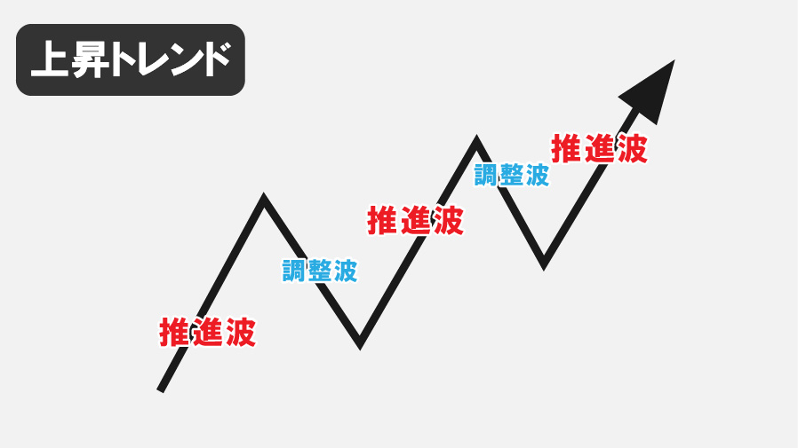 トレンドは一直線に進むわけではなく、必ずジグザグと波を描きながら進みます。この一時的な価格の戻りが「押し目(下降トレンドの場合は戻り)」ですよね。