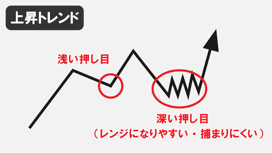 と不思議に思いますよね。その理由は、深い押し目の局面では、相場が「レンジ」になりやすいからです。