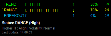 • STATUS:相場の主要状態を「TREND」「RANGE」「BREAKOUT」で明示