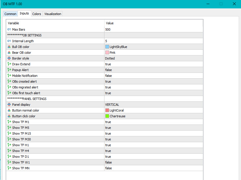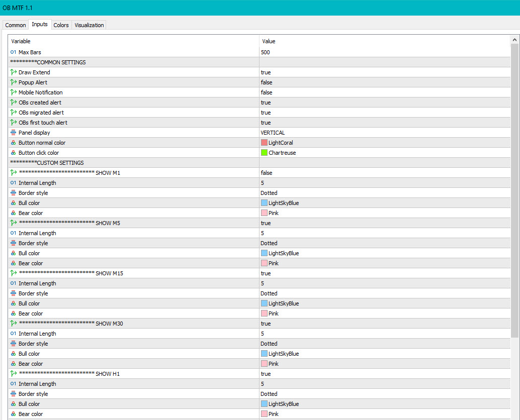 市場構造が進化するにつれてオーダーブロックが自動更新され、最新のデータが常に画面に表示されます。カスタム設定