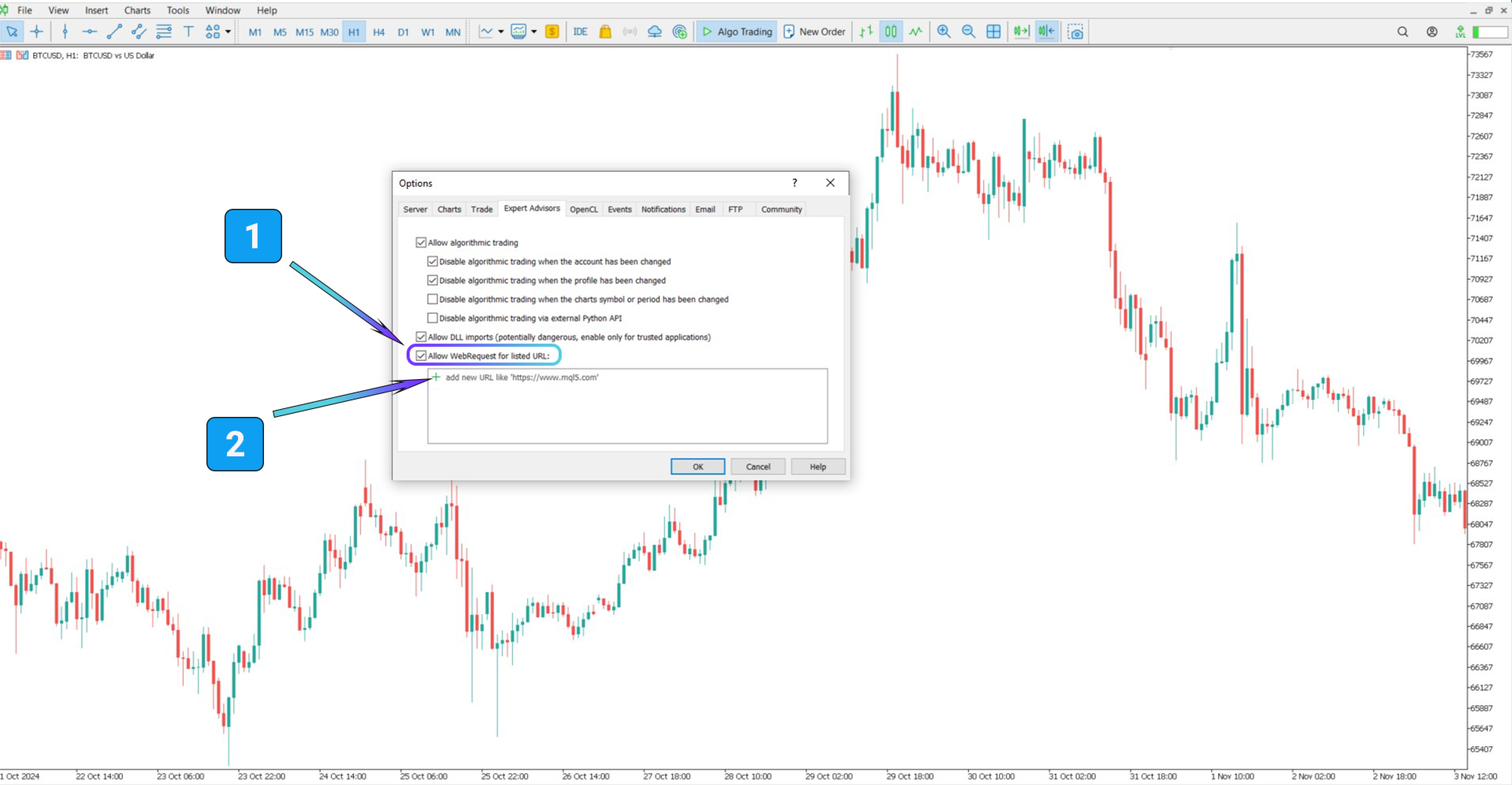 ツール > オプション > エキスパートアドバイザーに移動します。