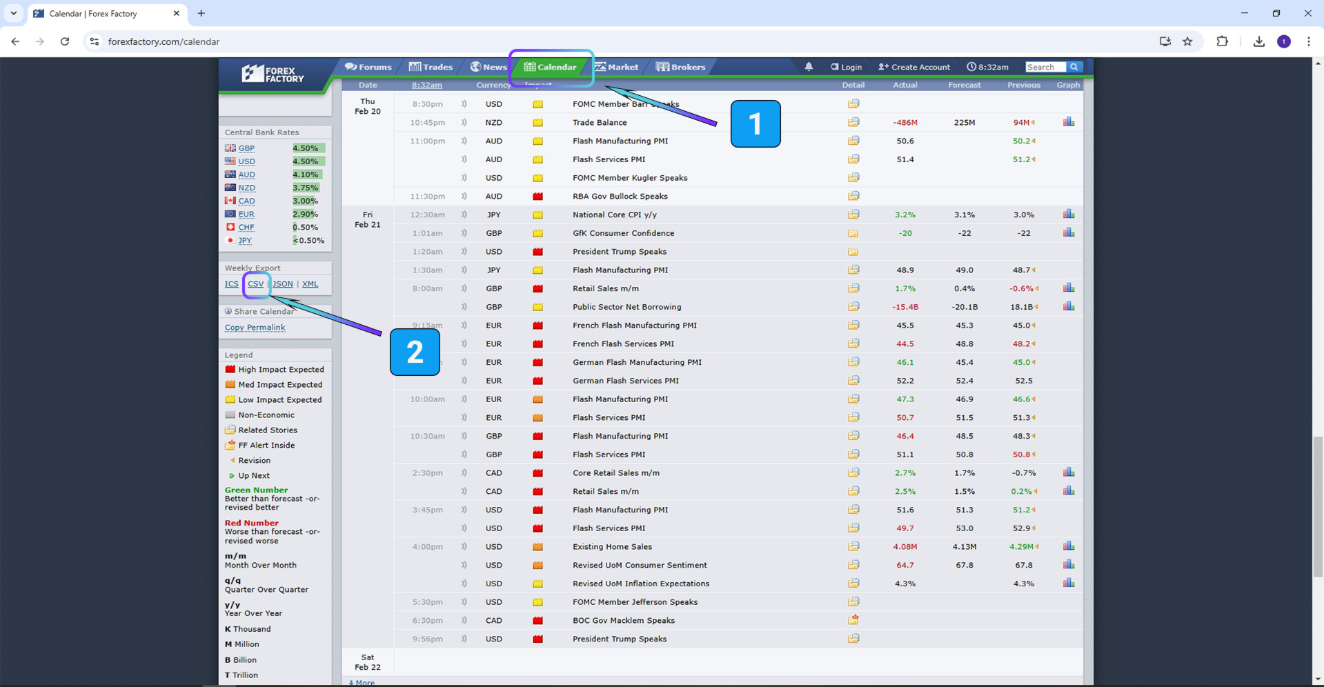ステップ1:Forex Factoryのカレンダーにアクセス