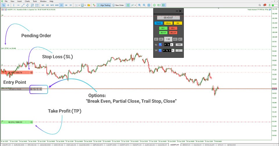 このトレードアシスタントエキスパートTFは、MetaTrader 5向けの包括的なポジション管理ツールで、トレーダーに取引の実行とリスクに対する完全なコントロールを提供します。直感的なパネルコントロール、自動ブレイクイーブン調整、トレーリングストップ機能、そして市場注文と保留注文の両方をサポートすることで、精度、速度、リスク効率を求めるトレーダーにとって不可欠なユーティリティとなります。