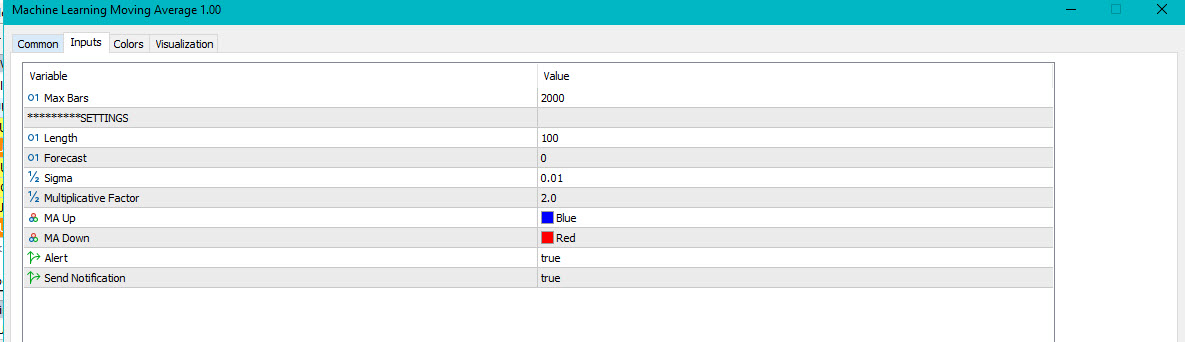 アラートが有効な場合、指標は価格とMLMAラインのクロスオーバーイベントをユーザーに通知します。